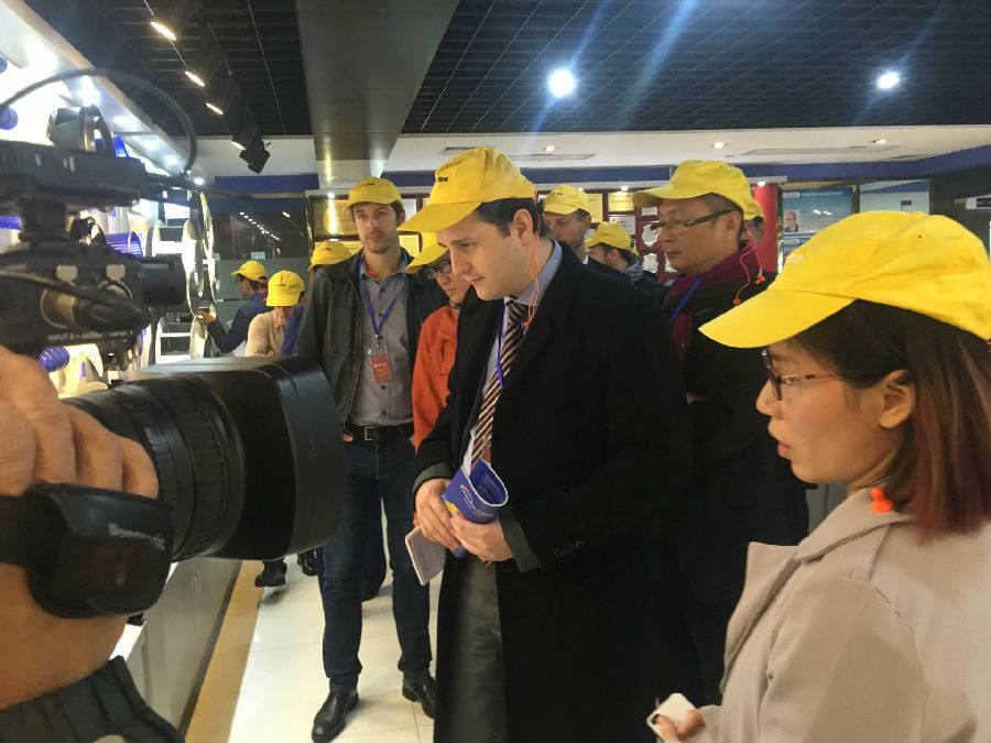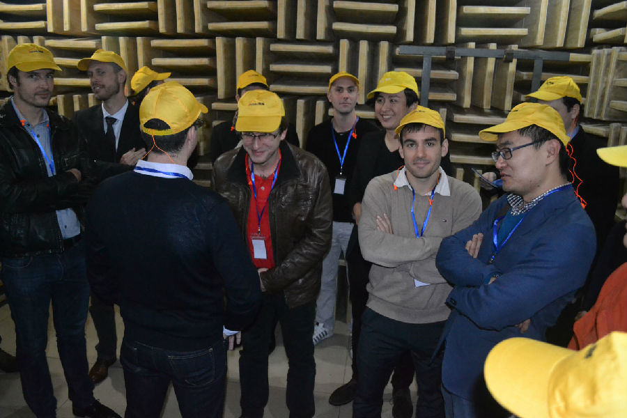 會議結束后,客商一行到公司展廳參觀。玲瑯滿目的產品讓客商們目不銜接,對于比較感興趣的產品,客商們向陪同人員現場咨詢其功能特點、制作工藝等情況,并拍照記錄。隨后,王總帶領客商一行來到模具分公司及塑料分公司生產車間參觀。期間,貴賓們對現場的先進設備、產品工藝等很感興趣,紛紛駐足詳細觀察。同樣作為參觀團指引翻譯官的海外市場部莫煥文、模具市場部于摯樸和王琛在參觀期間對法國貴賓提出的問題均做出詳細的解答。值得一提的是,客商們在王總的帶領下一同走進研發部消音室,親身體驗靜音效果。體驗過后,客商們對公司的消音設備點頭稱贊。