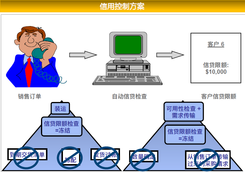 SAP系統提供完善的客戶信用額度控制功能,通過定義信貸控制范圍我們可以把信用控制分配到整個集團或是一個公司代碼下,比如我們可以整個集團是一個信用額度或者是某個公司代碼是一個信用額度。通過信貸控制,公司的應收賬款風險就可以得到有效的控制,同時又不增加銷售人員的工作量。