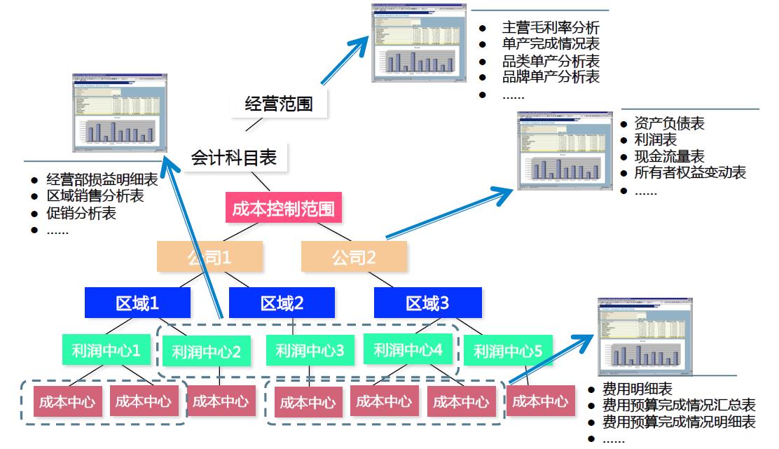 由于財務的控制規則前移,在開展業務時已經把后期財務需要的數據錄入到系統,月結時財務報表的數據提取就不需要大量的人工錄入。同時SAP提供多維度的財務組織架構,能靈活給出所需的報表。