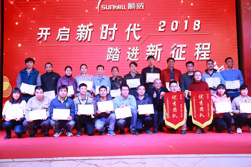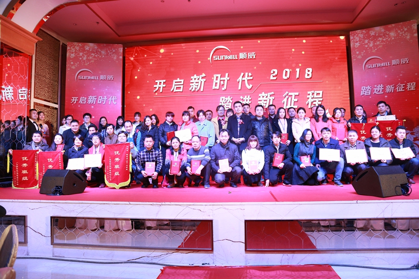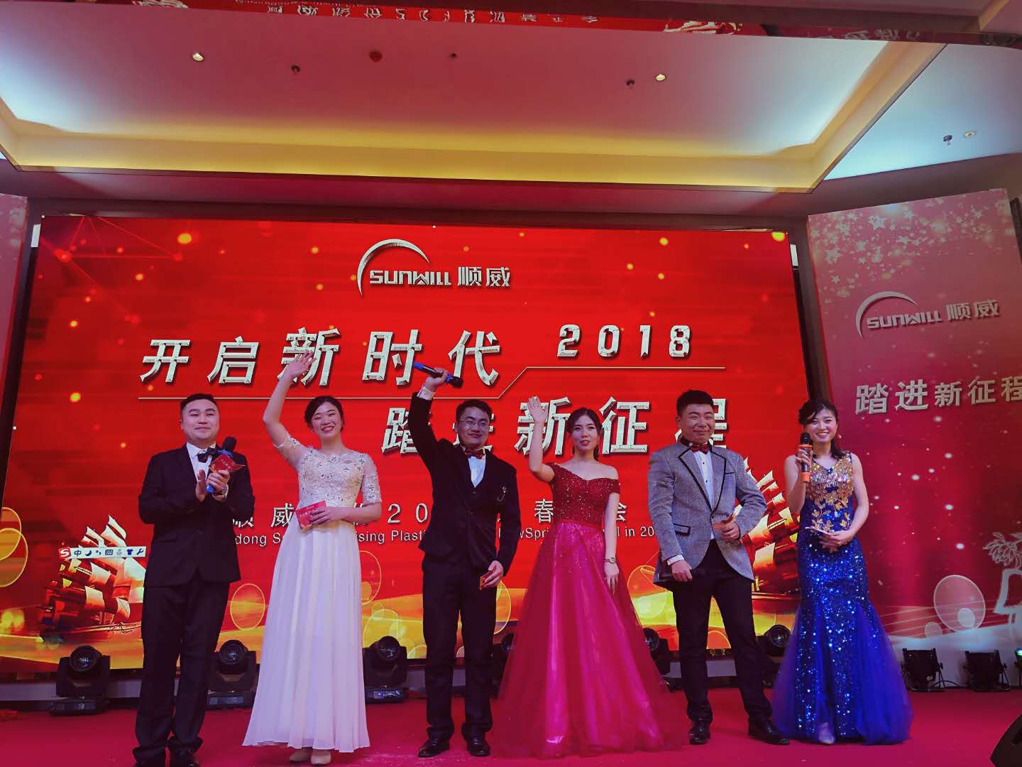 又到了辭舊迎新的年終歲末, 這一刻,連接著順威的過去與未來,凝結著順威人一年的收獲與希冀,這一刻,我們順威人有一個共同的情感紐帶。2018年2月8日18:00,順威股份“開啟新時代 踏進新征程”年會盛典在容桂喜悅酒家隆重舉行。集團總部、順德塑料分公司、順德模具分公司、自動化裝備公司、杏壇科技園全體員工、供應商嘉賓、集團領導歡聚一堂,共度聯歡。