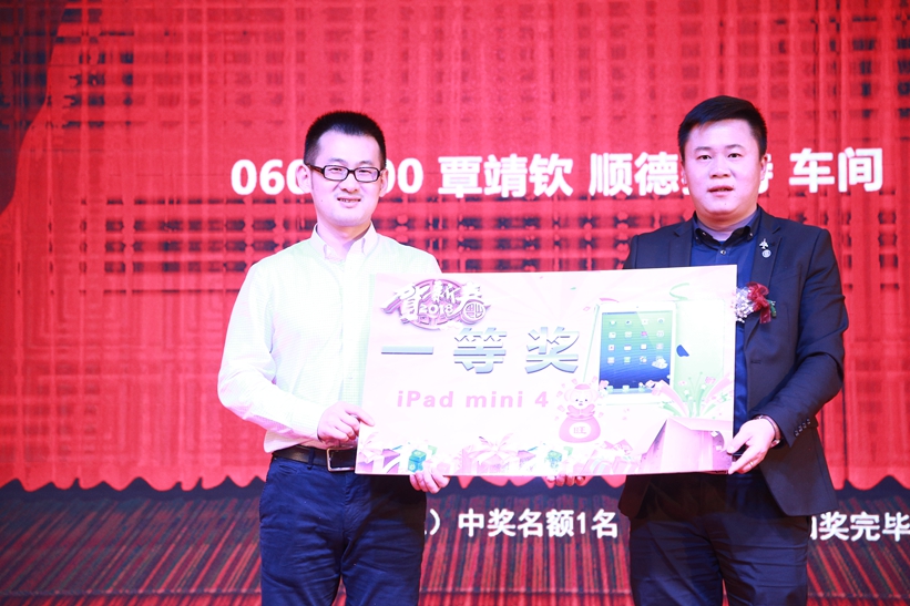 與此同時,節目流程中穿插了員工最受關注的幸運大抽獎。本年度抽獎獎品非常豐富,包括5000元現金獎、IPad mini 4、格力手機、華為手機、TCL智能除濕機、TCL電暖器、臺地扇、多用途電熱鍋以及商場購物劵等,共計1109份獎品,中獎率達60%。除此之外,集團常務副總裁何偉先生、集團組織及營運副總裁成再育先生各贊助現金大獎3000元,讓在場的同事們一次次沸騰起來。最后,總裁莫綺顏女士現場贊助了現金大獎5000元,把晚會現場的氣氛推上了最高潮,引領順威人在華燈匯聚之下,歡聲不斷,激情吶喊。