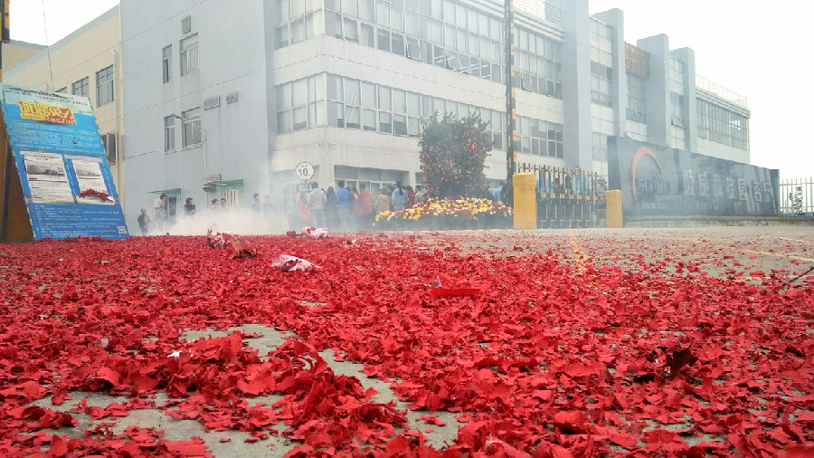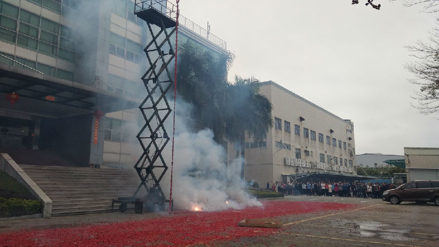 9點58分,自動化裝備公司內,副總裁成再育先生點燃鞭炮;10點58分,杏壇科技園內,常務副總裁何偉先生點燃鞭炮。震耳欲聾的鞭炮聲中,員工們互相祝賀,感受著新年的喜悅,寄望新的一年工作順利。
